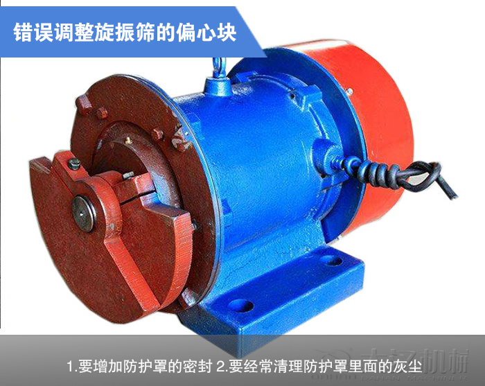 調(diào)整圓振動(dòng)篩偏心塊時(shí),誤把兩端偏心塊的方向調(diào)反,使振動(dòng)電機(jī)產(chǎn)生一個(gè)空間扭矩,使振動(dòng)電機(jī)在非正常狀態(tài)下工作,進(jìn)而引起燒毀。因此調(diào)整偏心塊時(shí),一定要注意其對(duì)稱(chēng)性,即兩端偏心塊要兩兩對(duì)應(yīng),或者說(shuō)是兩端偏心塊的重心連接線要與轉(zhuǎn)軸平行,不能成異面狀態(tài)。由于振動(dòng)電機(jī)的工作環(huán)境大都非常惡劣、粉塵大,如果防護(hù)罩密封不嚴(yán),很容易進(jìn)灰塵,引起偏心塊的摩擦運(yùn)轉(zhuǎn),從而燒毀電機(jī)。所以在工作環(huán)境惡劣的地方,